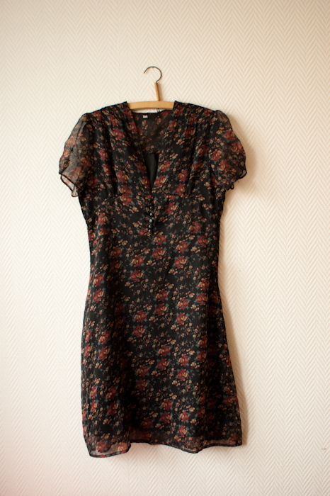 Ostin Lahdesta Lanttilan kirppikseltä tällaisen vanhan John Marks- merkkisen englantilaisen leningin. Hinta taisi olla kaksi euroa, ja vaate näytti vaan niin elegantilta ja nostalgiselta, että jouduin ostamaan sen. Mekko mahtuu päälle juuri ja juuri, enkä tiedä minkälaisessa tilaisuudessa sitä voisin käyttää, mutta ainakin vielä nautin sen omistamisesta :)